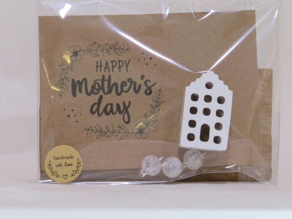 Karte mit Häuschen und 3 Ballonlichtern hübsch verpackt.