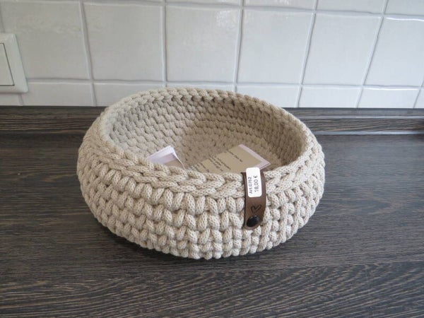0762 gehäkelte Korbschale, Honey Schale m Gänsefüßchenmuster, waschbar, Honey, ca 16cm